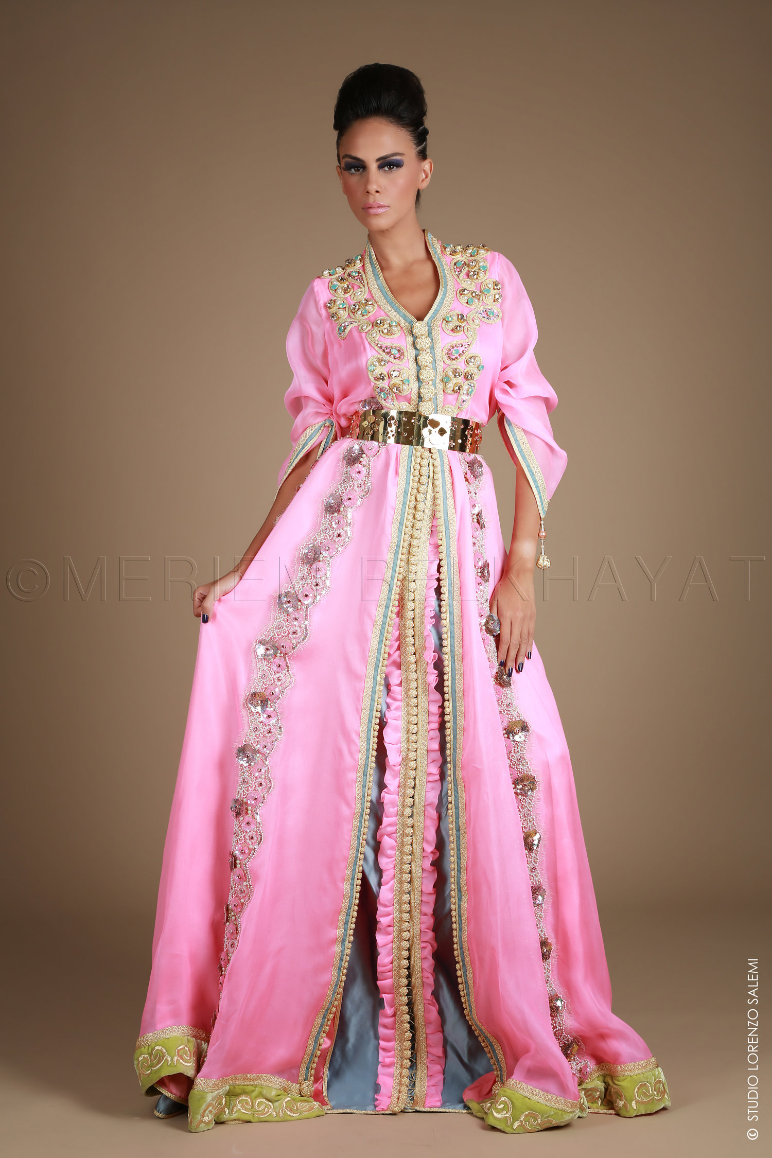 Meriem Belkhayat est l’une des créatrices de Caftan les plus influentes du moment. Ses robes sont connues au Maroc et dans le monde Arabe. En effet, plusieurs célébrités du Moyen Orient ont adopté le look Belkhayat : des pièces uniques qui expriment l’authenticité et l’élégance d’une tenue au chic intemporelle.